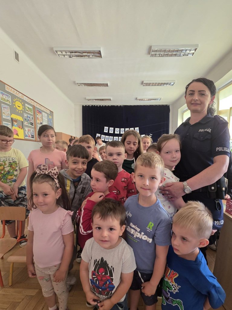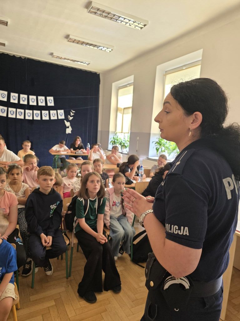 Dzięki ciekawym przykładom i rozmowie z uczniami dzieci mogły aktywnie uczestniczyć w zajęciach, dzieląc się swoimi doświadczeniami i pytaniami. Spotkanie było wartościową lekcją, która na pewno pomoże wszystkim spędzić wakacje bezpiecznie i radośnie.